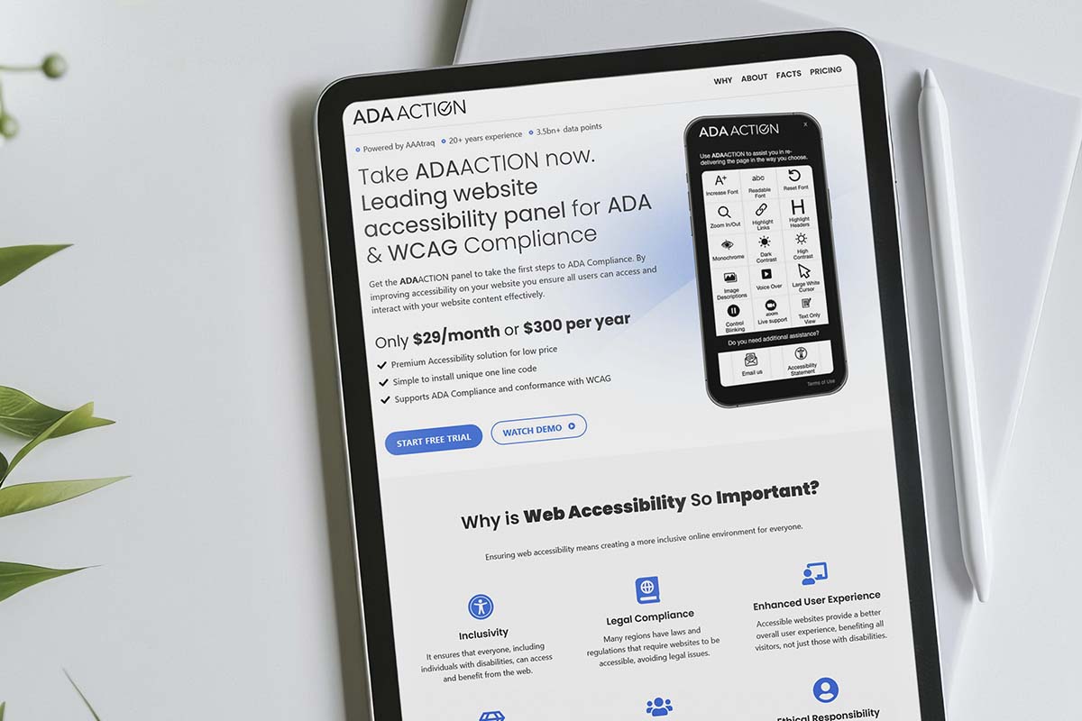 ADAAction commissioned DCP Web Designers to build a new landing page website for their accessibility panel tool.