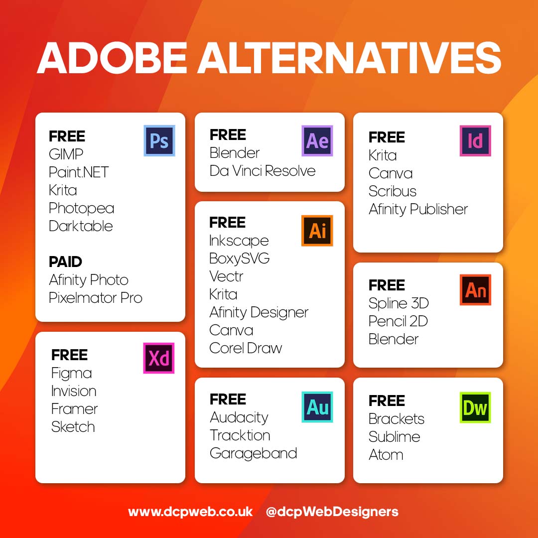 Here’s a curated guide to the best Adobe substitutes, organised by Adobe application, with handy links for each.