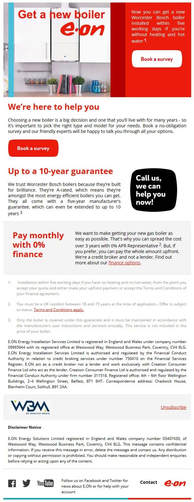 We Breathe Media commissioned DCP to create a newsletter design for their E.ON boiler online marketing campaign.