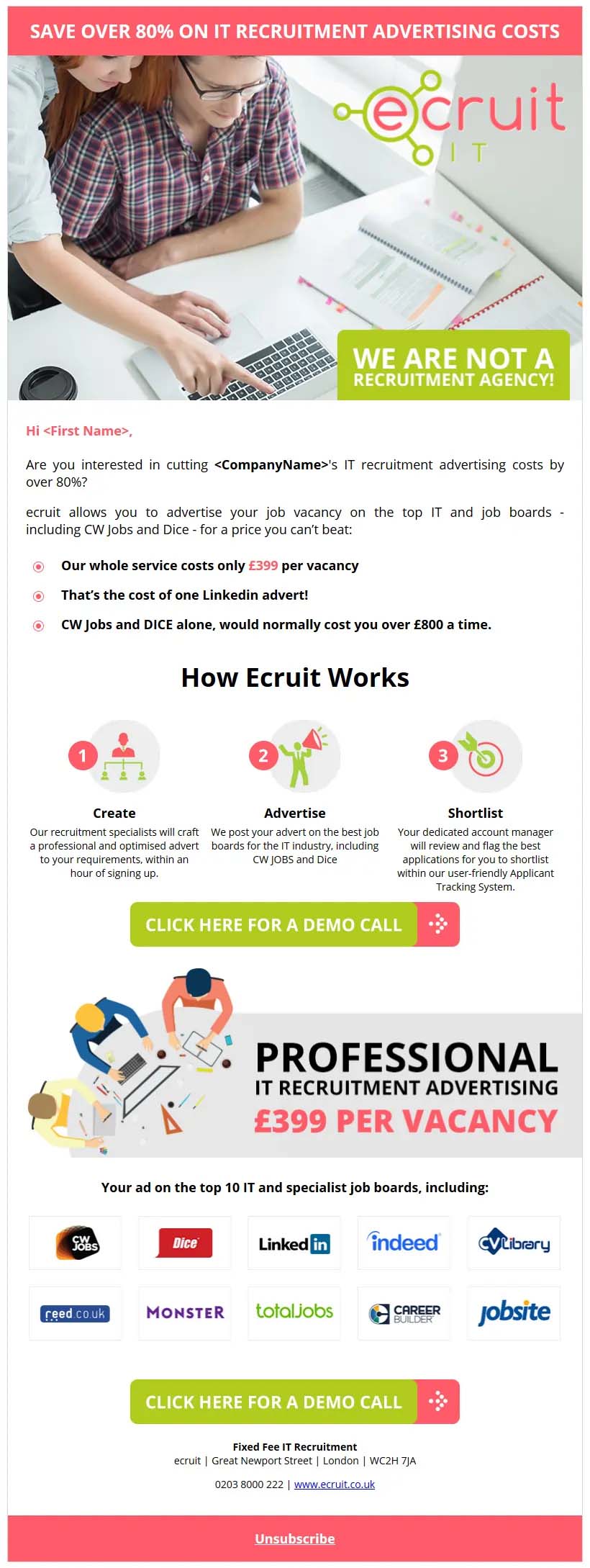 eCruit contacted DCP newsletter designers to create an email design for their Recruitment Agency marketing campaign.