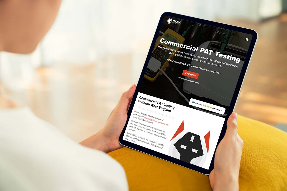 DCP Web Designers custom-built an SEO optimised WordPress website for Fox PAT Testing, a trusted provider of Portable Appliance Testing services across South West England. With more than 10 years of industry expertise, Fox PAT Testing ensures electrical safety for offices, landlords, charities, government departments, and commercial businesses. Their NAPIT accredited technicians deliver efficient, reliable, and fully compliant PAT Testing tailored to client requirements.