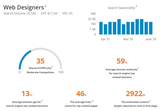 In the above images, I can see that the keyword difficulty is lower at “25” for the keyword “London Web Designers” compared to “35” for the keyword “Web Designers“