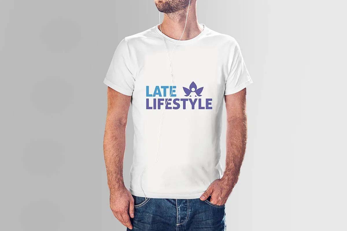 The logo was created from a blank canvas using Adobe Illustrator. Late Lifestyle requested for the logo to use a two-tone blue and purple colour scheme. Late Lifestyle also requested for the logo to incorporate a lotus leaf.