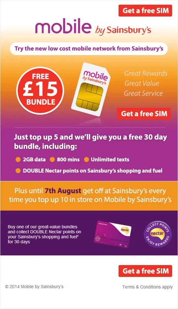 DNLS commissioned DCP Graphic Design team to build a creative for their Mobile by Sainsbury email marketing campaign.