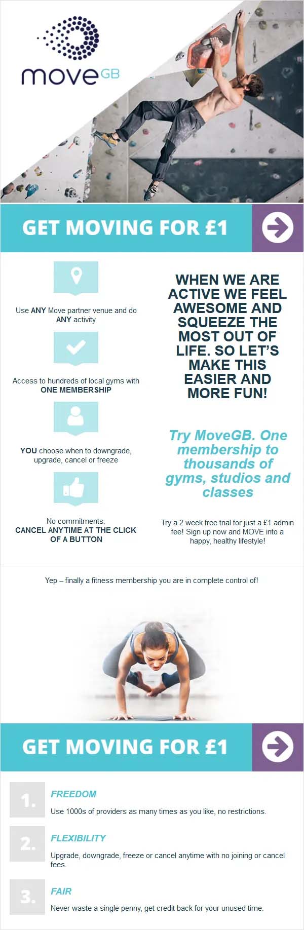 DNLS contacted DCP design team to build a new email creative for Move GB – Gym Membership internet marketing campaign.