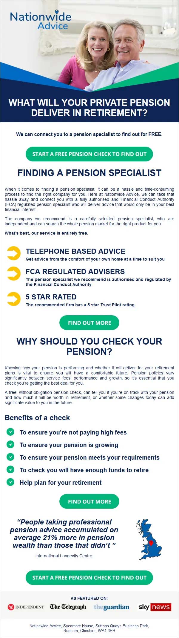 Click Labs contacted DCP to create a newsletter design for the Nationwide Advice Private Pension online marketing campaign.