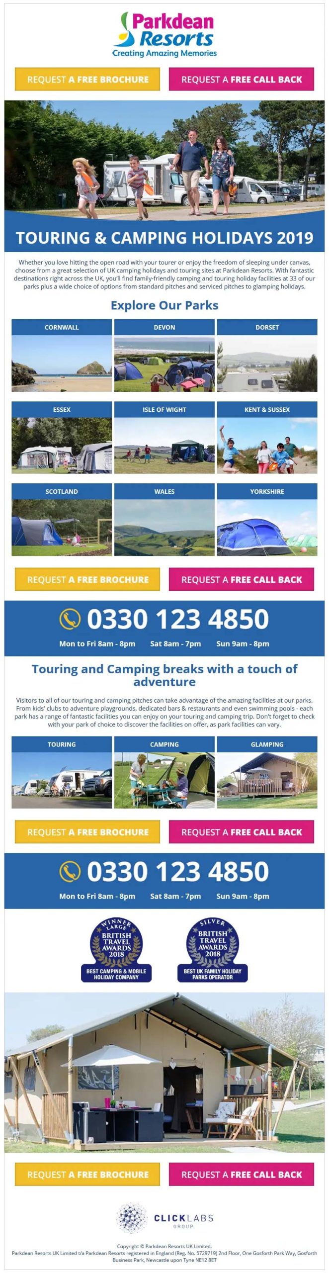 Click Labs contacted DCP newsletter designers to build an email creative for parkdeanresorts.co.uk marketing campaign.