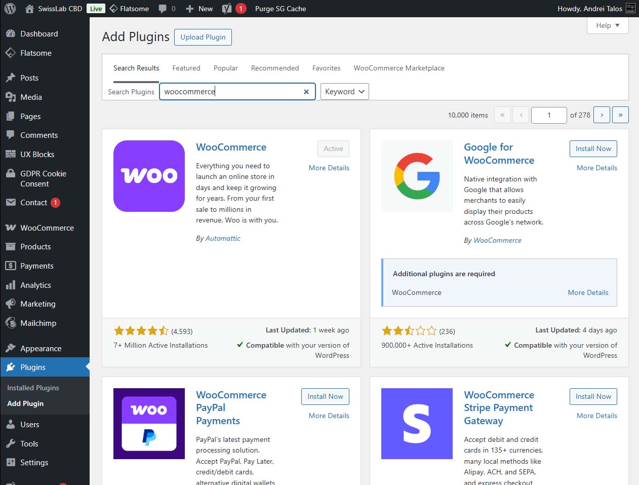 - Search for “WooCommerce” in the search bar.