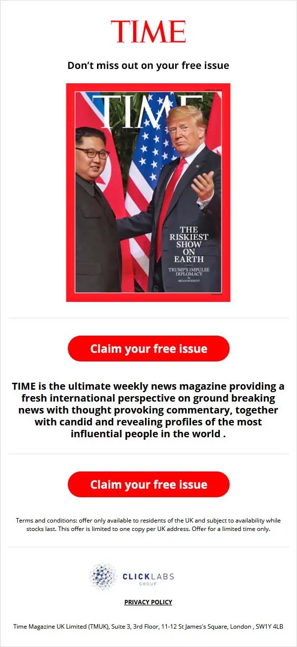 Click Labs commissioned DCP to create a newsletter design for their Time Magazine online marketing campaign.