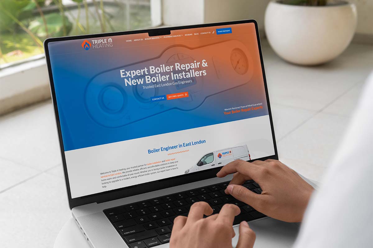DCP Web Designers developed a custom WordPress web design for Triple A Heating, a trusted boiler engineer in East London. Built using Elementor Pro, the website boasts a sleek, user-friendly design that showcases their expert boiler installation, repair, and maintenance services. Designed for easy navigation, visitors can quickly find service details, request quotes, and book appointments.