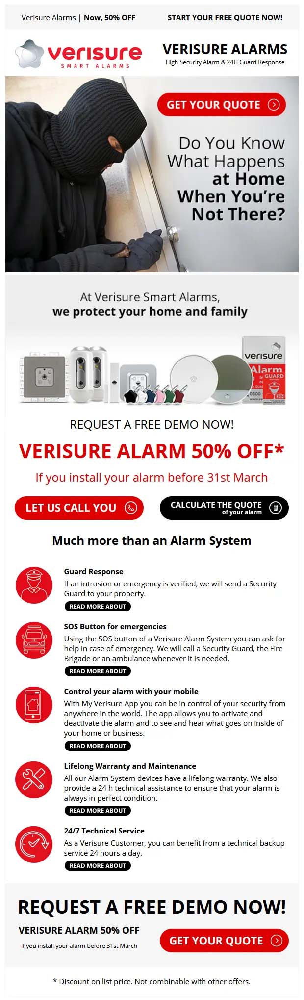 Click Labs contacted DCP newsletter design team to build an email creative for Verisure Smart Alarms marketing campaign.